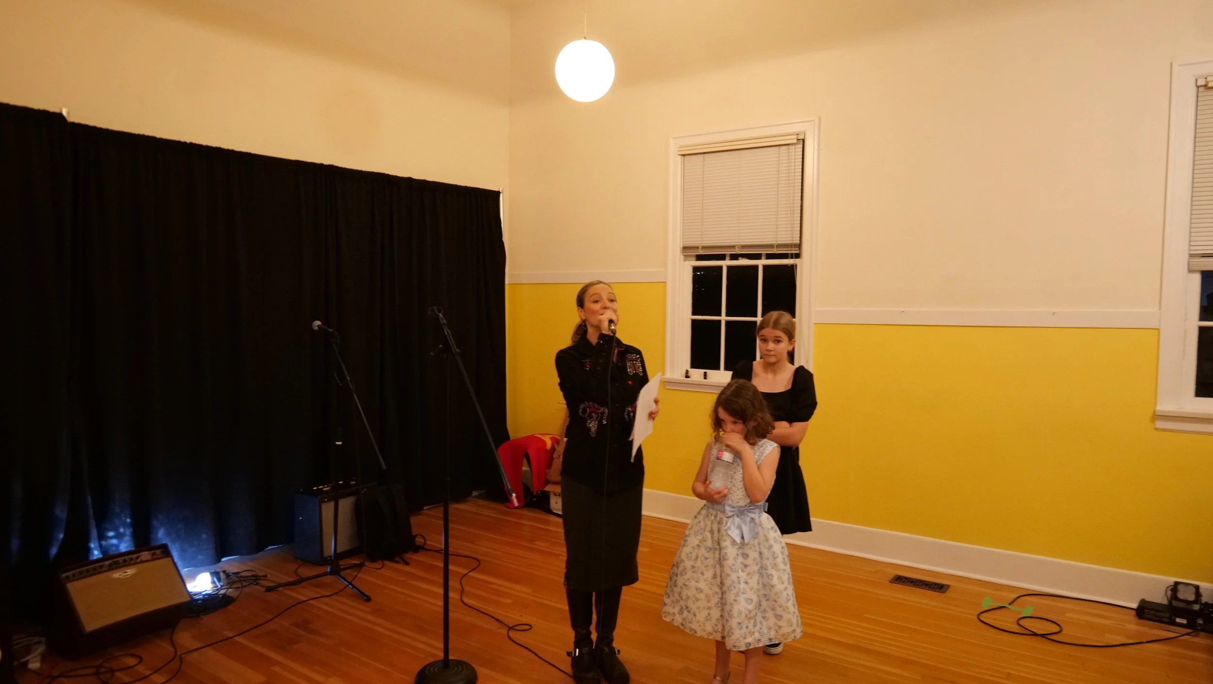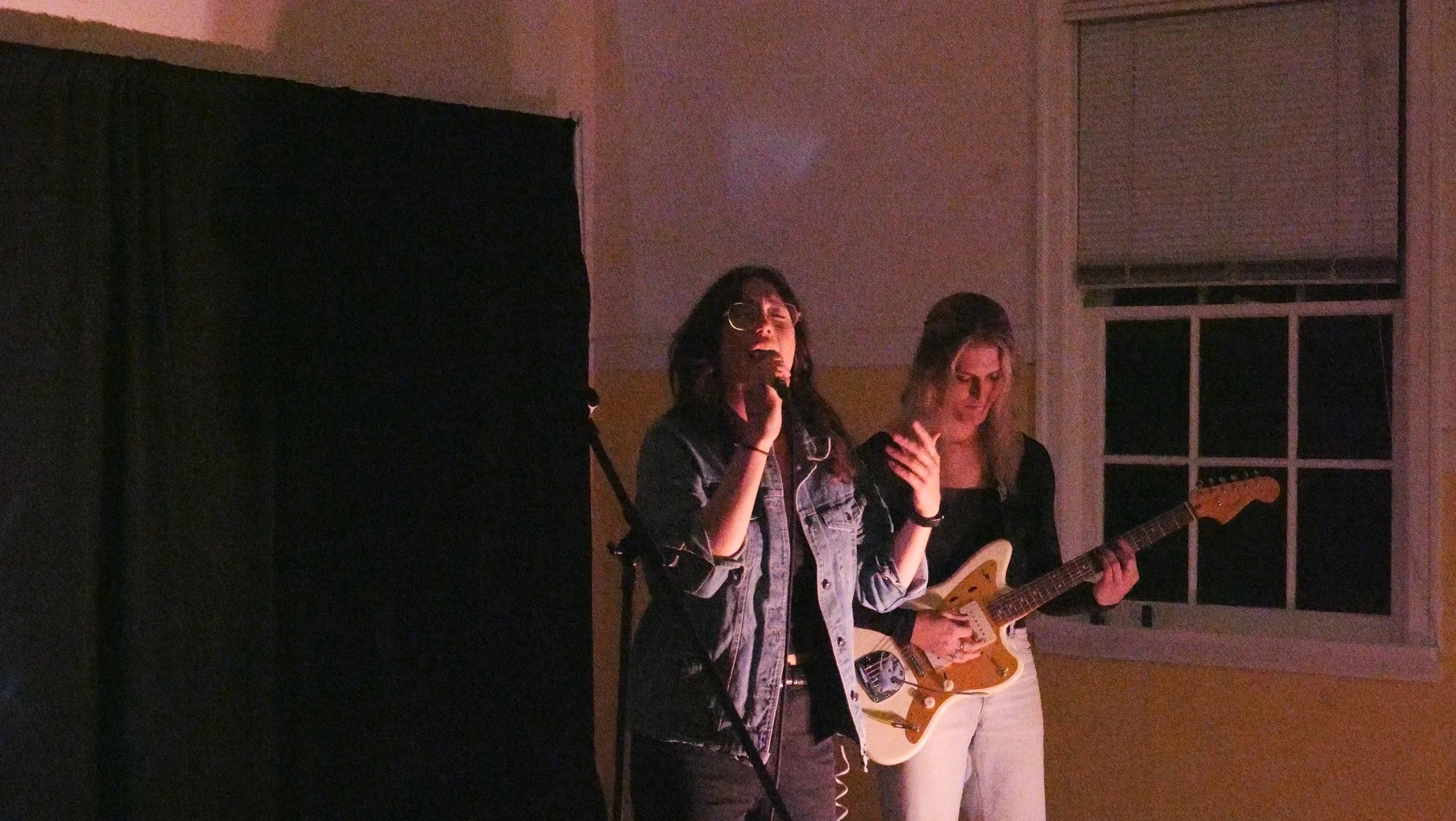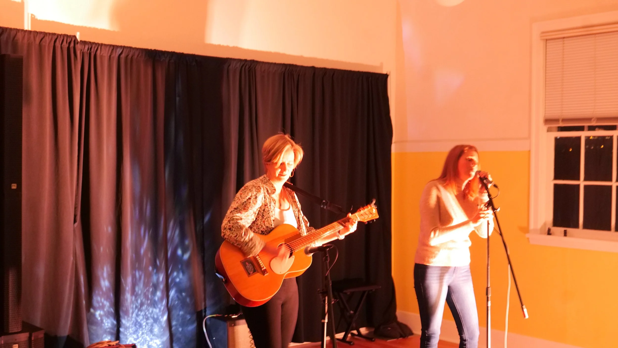 Tess and Tia played original and traditional folk music on fiddle and cello.